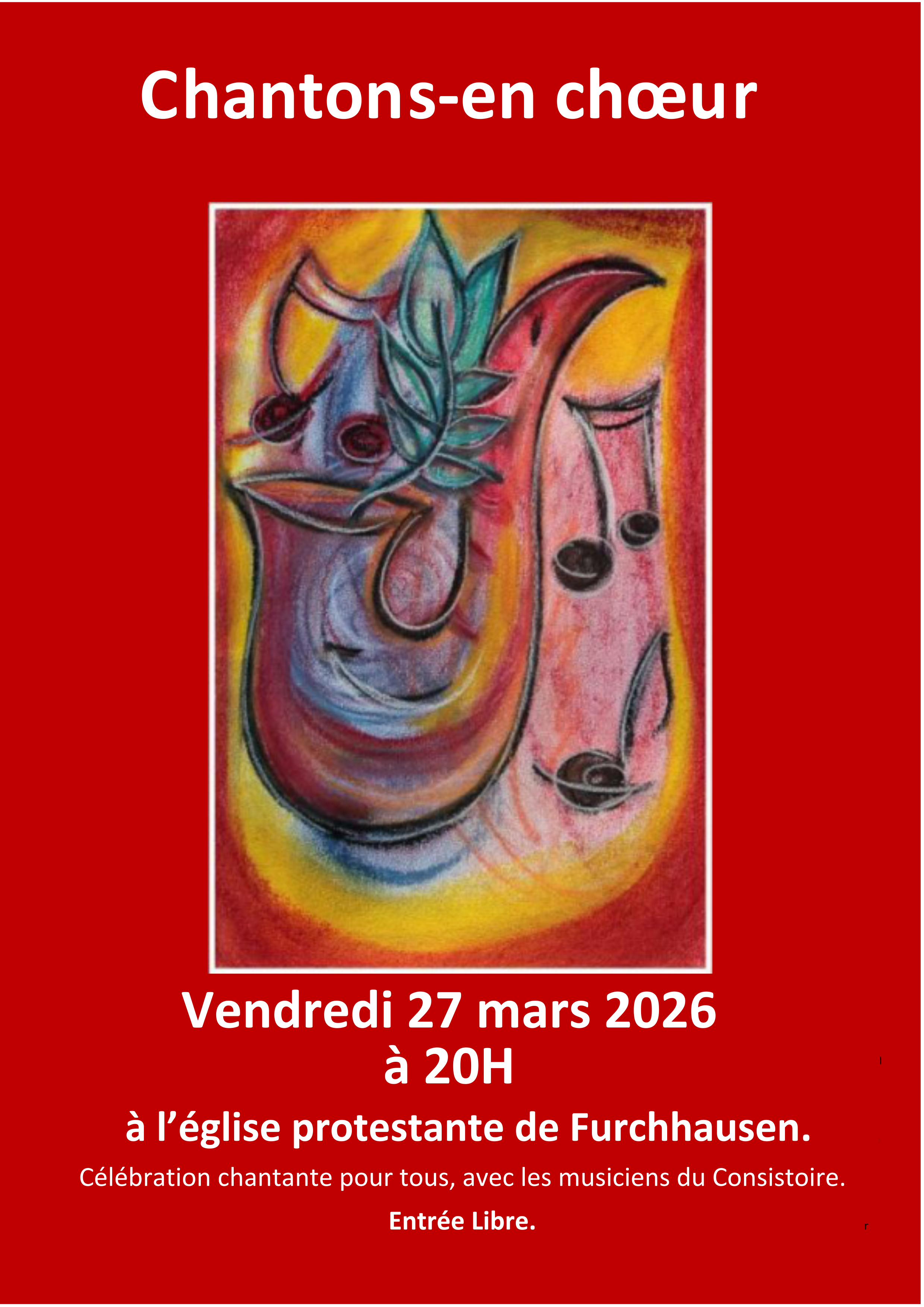 Vendredi 27 mars à 20h à l'église de Furchhausen.