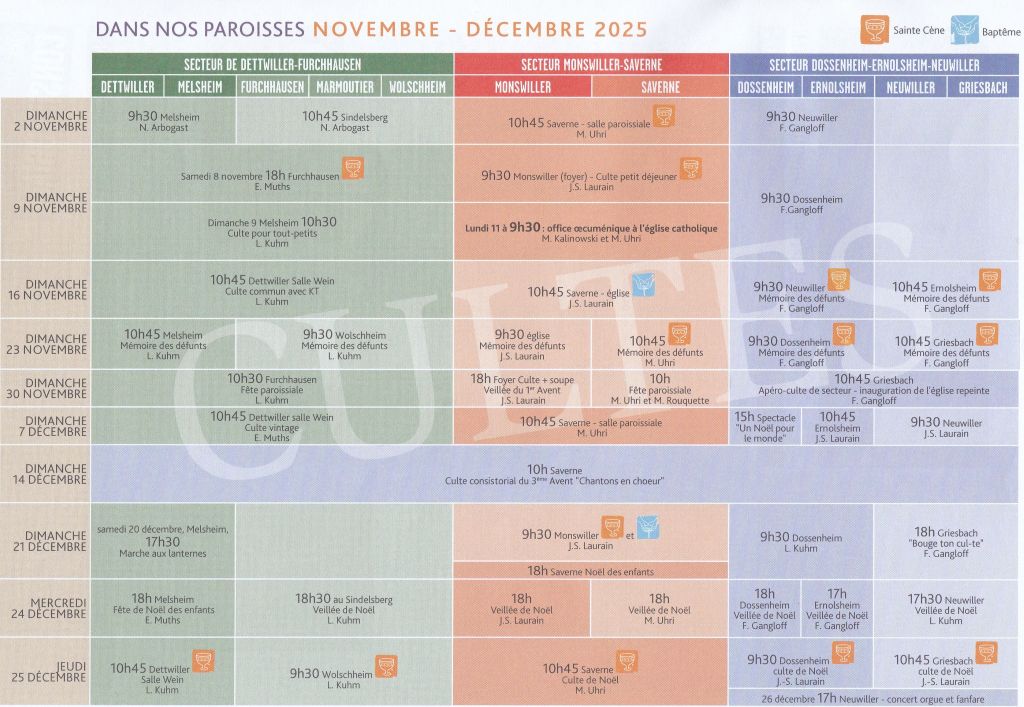 PLANNING DES CULTES DANS NOS PAROISSES : NOVEMBRE – DECEMBRE 2025
